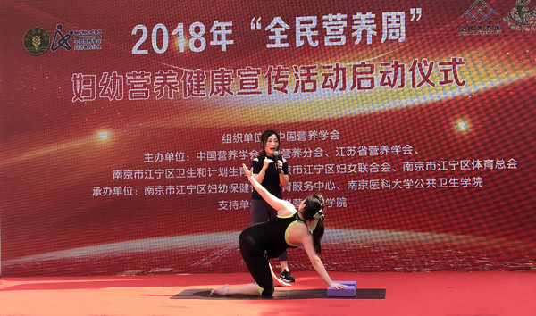 南京市江寧區(qū)婦幼保健計(jì)劃生育服務(wù)中心員工為啟動(dòng)儀式獻(xiàn)上了一段活力四射的《咖喱咖喱》舞蹈。來自南京醫(yī)科大學(xué)公共衛(wèi)生學(xué)院“人初?康健”學(xué)生社團(tuán)的六位大學(xué)生配合《全民營養(yǎng)歌》表演了他們自編的舞蹈;為倡導(dǎo)'吃動(dòng)孕平衡、合理孕期增重',由專業(yè)瑜伽機(jī)構(gòu)的老師帶著孕婦學(xué)員在啟動(dòng)儀式上表演了孕期瑜伽活動(dòng)。有獎(jiǎng)問答環(huán)節(jié)吸引力大量市民參與,對生命早期營養(yǎng)的話題表現(xiàn)出極大關(guān)注。