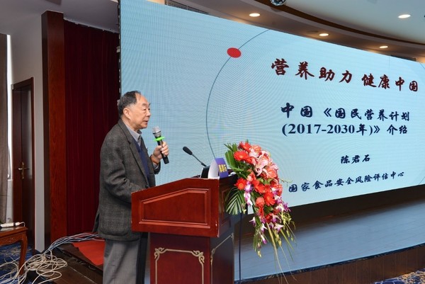 會(huì)議由中國(guó)工程院陳君石院士與中國(guó)營(yíng)養(yǎng)學(xué)會(huì)婦幼營(yíng)養(yǎng)分會(huì)汪之頊主任委員共同主持。作為國(guó)內(nèi)最著名營(yíng)養(yǎng)與食品安全權(quán)威專家,陳君石院士作了《國(guó)民營(yíng)養(yǎng)計(jì)劃(2017—2030年)》介紹與《營(yíng)養(yǎng)包: 改善中國(guó)兒童的輔助食品營(yíng)養(yǎng)補(bǔ)充品》兩個(gè)專題報(bào)告。陳院士從總體要求、指導(dǎo)思想、基本原則、主要目標(biāo)等方面對(duì)《國(guó)民營(yíng)養(yǎng)計(jì)劃》進(jìn)行了解讀,并在報(bào)告中指出,《國(guó)民營(yíng)養(yǎng)計(jì)劃》是第一個(gè)《“ 健康中國(guó)2030”規(guī)劃綱要》的配套文件。陳院士重點(diǎn)介紹了計(jì)劃中的七項(xiàng)實(shí)施策略,包括完善營(yíng)養(yǎng)法規(guī)政策標(biāo)準(zhǔn)體系、加強(qiáng)營(yíng)養(yǎng)能力建設(shè)、強(qiáng)化營(yíng)養(yǎng)和食品安全監(jiān)測(cè)與評(píng)估、發(fā)展食物營(yíng)養(yǎng)健康產(chǎn)業(yè)、大力發(fā)展傳統(tǒng)食養(yǎng)服務(wù)、加強(qiáng)營(yíng)養(yǎng)健康基礎(chǔ)數(shù)據(jù)共享利用和普及營(yíng)養(yǎng)健康知識(shí)。